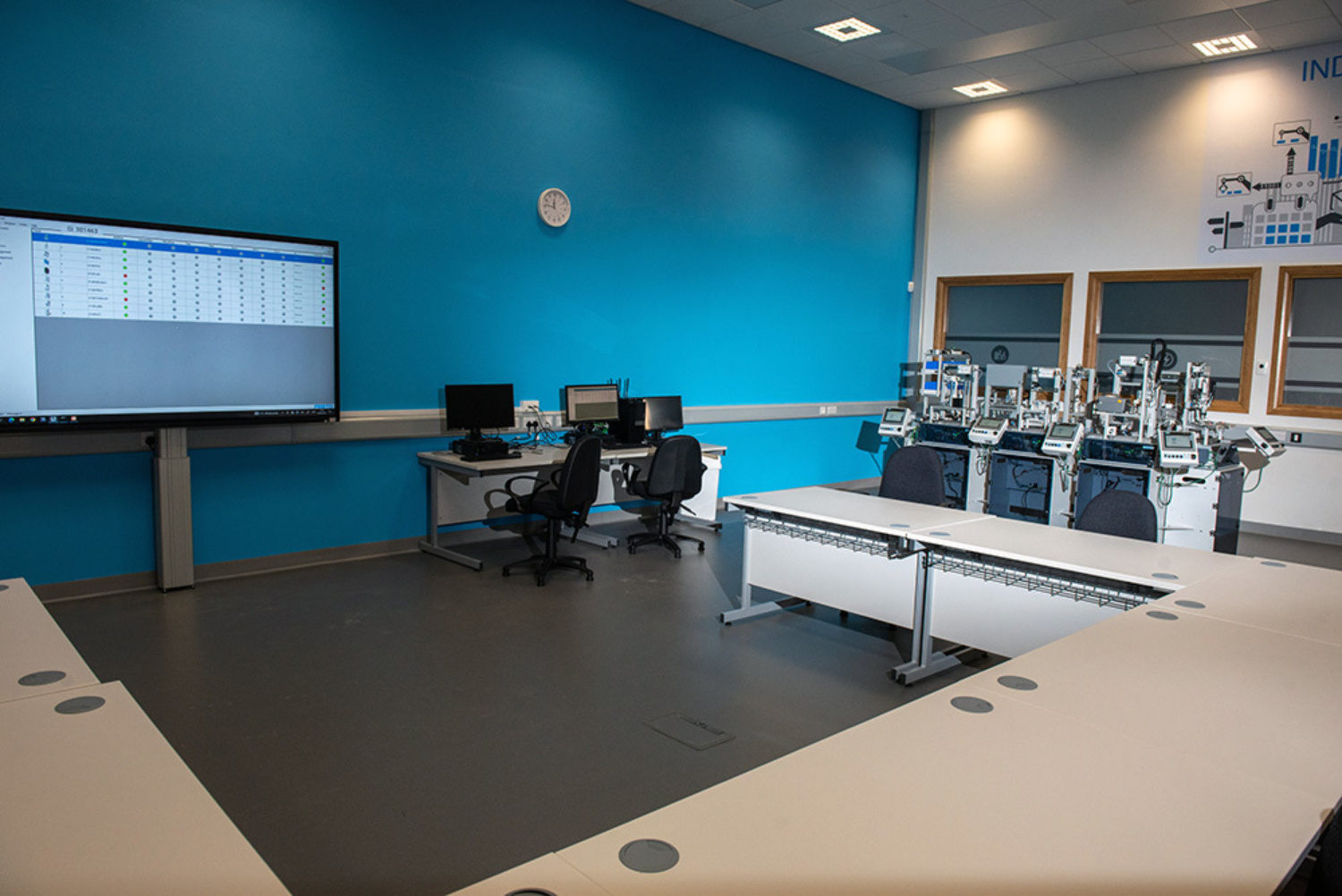 The i4.0 Centre boosts a new teaching lab space suitable for courses in a range of areas of automation and robotics, electronics, cloud technologies, artificial intelligence, machine learning, smart manufacturing and 5G technology.