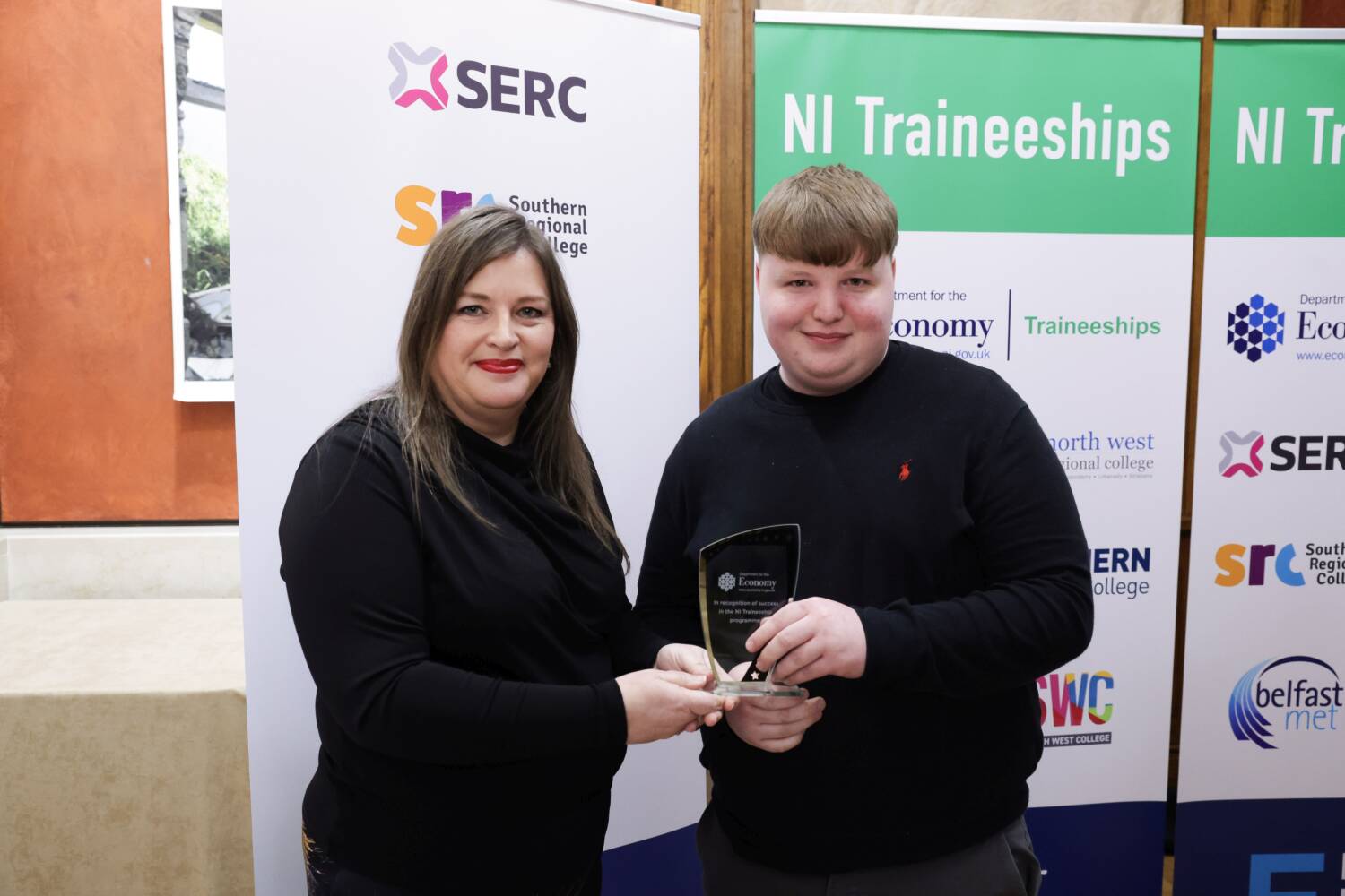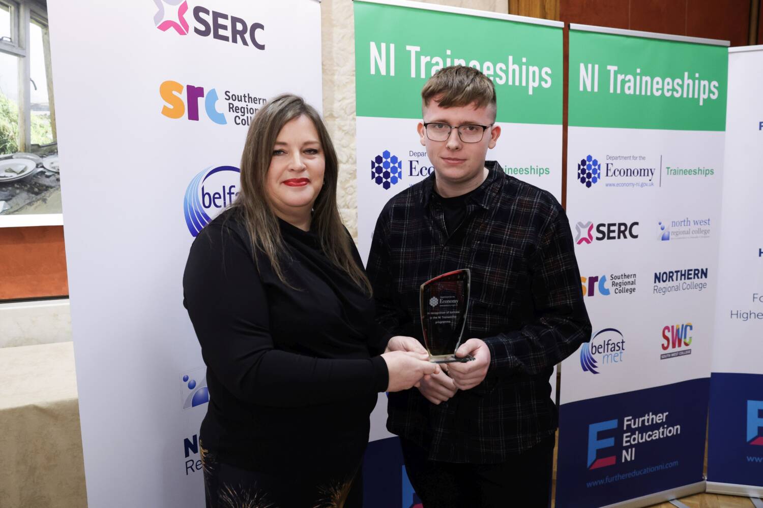 The new NI Traineeships enable school-leavers and adults to gain a qualification equivalent to five GCSEs (Level 2), while also gaining valuable work experience in the sector they are interested in. The students were recognised for exceptional progress, personal achievement, and their commitment to completing the Traineeship.