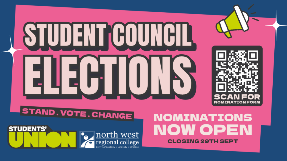 Each year, a team of students are democratically elected to lead the NWRC Student Union Council. They make sure that our students are heard and have what they need to learn and thrive whilst at college. They keep in touch with your views and meet with the senior leadership of the college to share what students want and need to have a great student experience at NWRC.