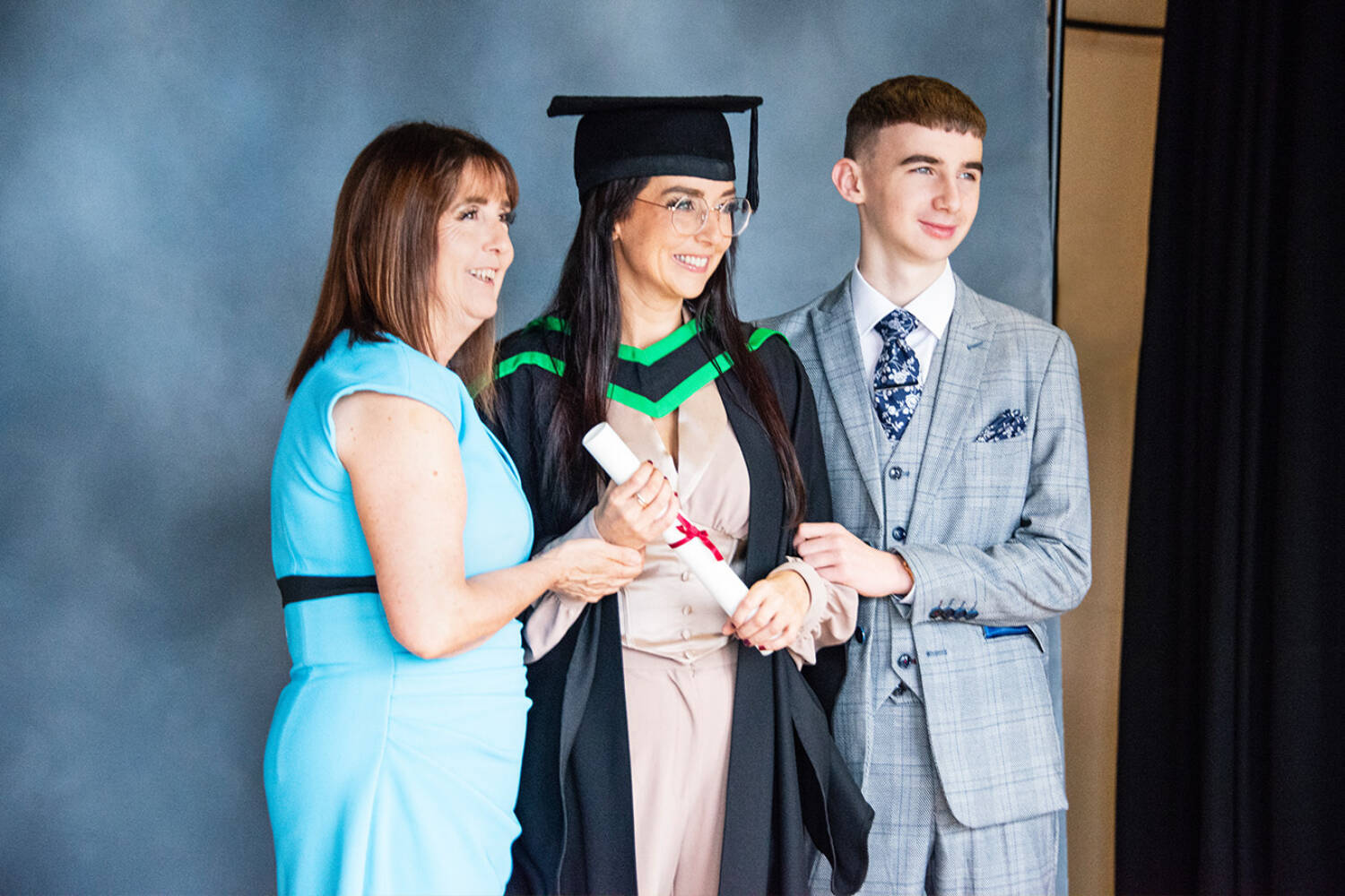 Female graduate with her mother and brother